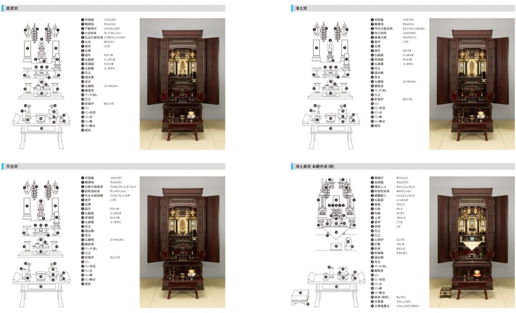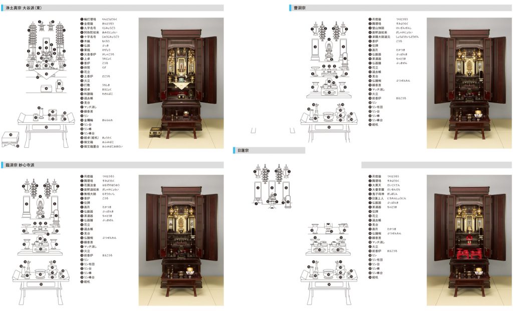 仏具は宗派により異なる場合があります。浄土真宗は他の宗派と異なり、同じ浄土真宗の中でも、大谷派(東)、本願寺派(西)、高田派などで異なります。地域によっても異なる場合があります。